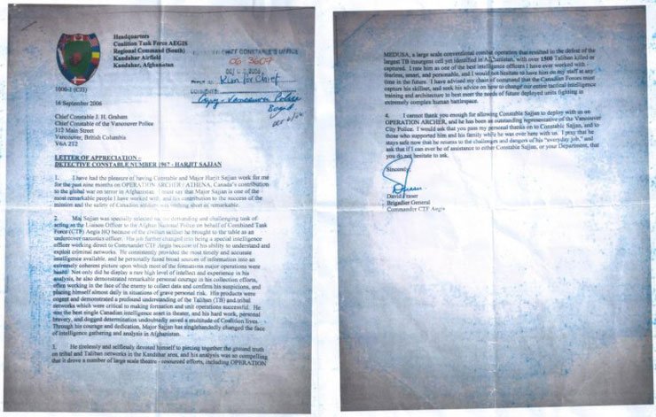 A 2006 letter of appreciation for Sajjan's services from the commander of Canada’s Coalition Task Force in Afghanistan has surfaced, and it reads like a Bourne Trilogy movie script.