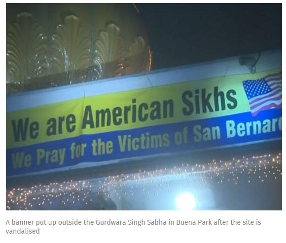 Last week, police opened an investigation after a Sikh temple in Buena Park, Orange County was vandalised with anti-Isis graffiti, featuring the word Islam misspelled as "Islahm”.