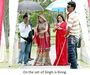 Everybody's Sikh except Ranvir Working with Akshay Kumar is like a picnic, he is full of life on the sets. He's one hero you can call at any time - even early in the morning - he will report to work bang on time. He plays Happy Singh, a daring, fun-loving, romantic Sikh who sings and dances. His co-star Katrina plays an NRI and she looks like a dream. She's so hard-working - she now speaks to me only in chaste Hindi!