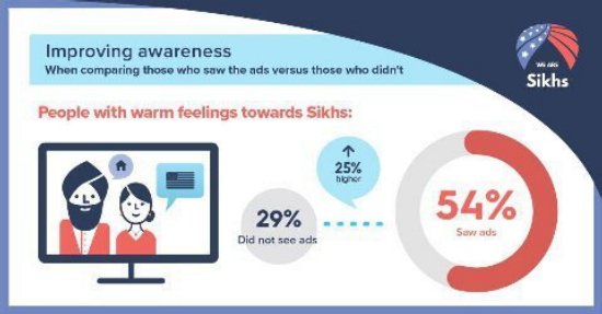 • 57 percent who saw the ads are also more likely to associate a bearded man wearing a turban with Sikhism.