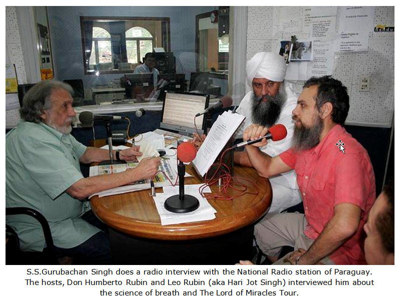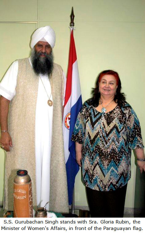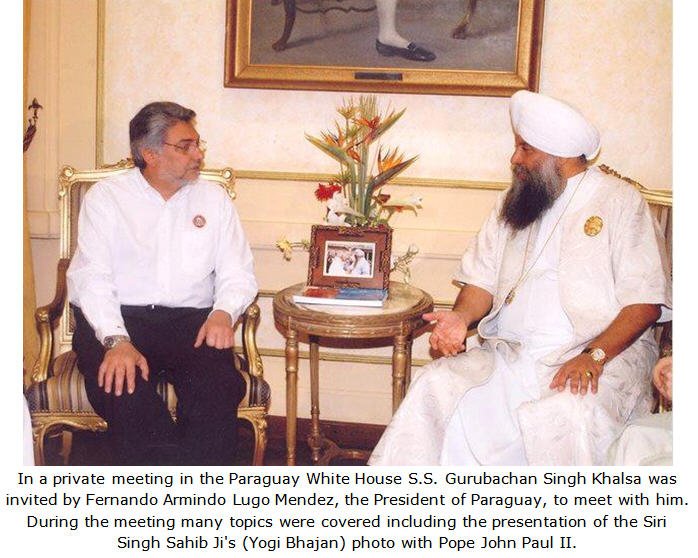 The capital of Asuncion is located in the south of the country on the Argentine border. The people are smiling, sweet and beautiful. Their manners, deportment and language are kind, royal and graceful. It is here in Asuncion, Paraguay that we have the center for all of our projects in South America. El Camino Real [The Royal Path] and Centro Dharma as we are known is the office of Sikh Dharma IberoAmerica. Sat Pal Kaur Fernandez, Executive Director, coordinates all of our efforts throughout South America. It is through her great dedication and devotion that the teachings of Yogi Bhajan and Shabad Guru have expanded so much throughout Paraguay as well.On the first day we were received by the Arch Bishop of Paraguay, Monsignor Pastor Cuquejo. The Arch Bishop is the highest ranking official of the Catholic Church in Paraguay. His knowledge of the human spirit and spiritual life and its challenges was obvious. It was a very beautiful meeting.
