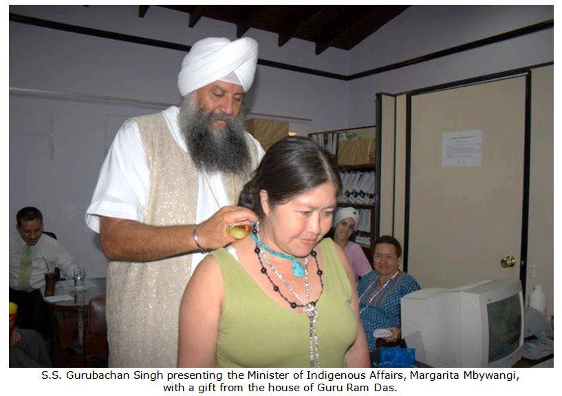 Later that day, we were also welcomed by the Minister of Indigenous Affairs, Margarita Mbywangi. This is the first time in the history of Paraguay that an indigenous became director of this most important office. When she was four years old she was sold several times as a slave in the jungle and forced to work. Now as a 46 year old mother of 3, she is a gentle woman who shares the hopes, aspirations and challenges of more than a quarter of a million indigenous people of the country. Her grace and receptivity to our presence and what we had to offer concerning health and development in the rural areas was overwhelming. We are now developing a project to bring 45 water wells to the remote villages in the arid Chaco [desert] areas of Paraguay. She was happy to know that the House of Guru Ram Das stands with her and her people.