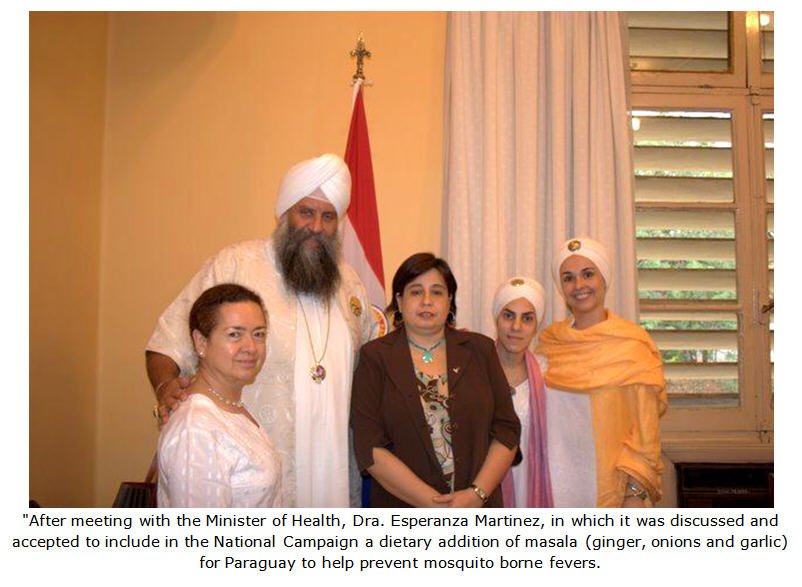Finally, we were graciously received by the Minister of Health, Doctor Esperanza Martinez, who was very receptive to including "masala" in their national campaign for the prevention of "dengue and yellow fevers". Moreover, she will be sending representatives to our SUPER HEALTH program that is currently being offered in Paraguay. Super Health is a complete program that Yogi Bhajan has given for those who want to break from any kind of substance abuse and addiction.