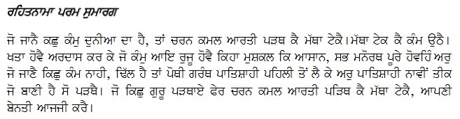 jo jÁnÄ kaCu kaVmu dunÅÁ dÁ hÄ tÁV charan kamal ÁratÅ paRaT kÄ maTÁ qekÄ. maTÁ qek kÄ kaVm uQÄ a KatÁ hovÄ aradÁs kar ke jo kaVmu Áei rujç hovÄ kihÁ mushakal ki ÁsÁn saB manoraT pçre hovahiaV aru jo jÁNÄ kiCu kaVm nÁhÅ Wil hÄ tÁV poTÅ graVT pÁtishÁhÅ pahilÅ to lÄ ke aru pÁtishÁhÅ nÁvÅ tÅk jo bÁNÅ hÄ so paRaTÄ. jo kiCu gurç paRaTÁe Per charan kamal ÁratÅ paRiT kÄ maTÁ qekÄ ÁpaNÅ benatÅ ÁjajÅ karÄ.
