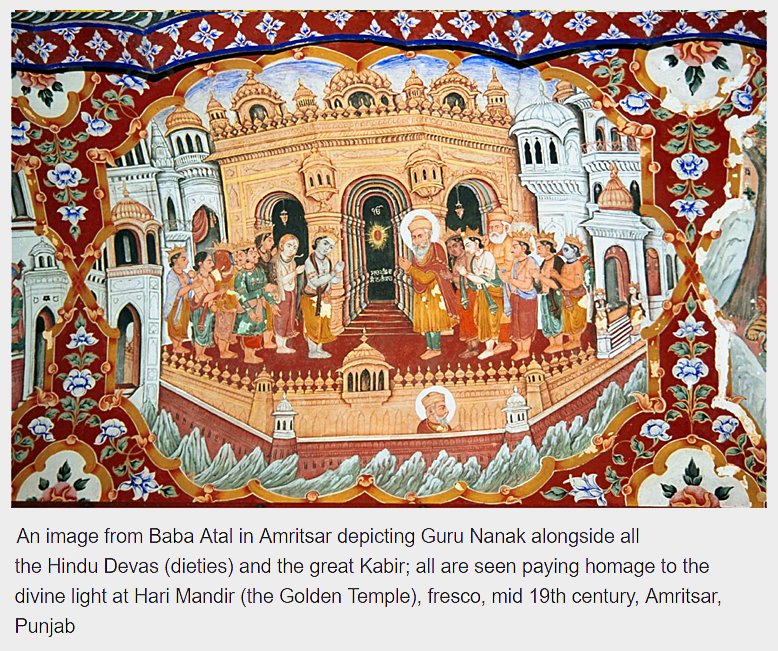 So, when you see Guru Nanak portrayed as donning a Sufi cap or in the company of Vishnu, Durga or any of the others of the Hindu pantheon, resist the tempting call to take up arms. Be not angry. Could it be that the artist (or the patron who commissioned the work) admired Nanak so much that he placed the Guru in the company of gods that he himself loved and revered? Remember also the principle of artistic freedom.