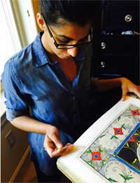 “Having a multicultural upbringing [Punjabi and American] I focus on things or objects that identify us as people,” Rupy explained. She referenced a phulkair chuni as an example. “I analyze the significance it carries for me as a Punjabi and as an American. Is there duality or a clash? How does it define me?” Further drawing on her culture, Rupy draws inspiration from Indian and Persian miniatures. “I gravitate towards the colorful, decorative nature of traditional art along with the devotion and time that goes into creating it.” But every day is different for Rupy. “It’s healthy to engage with different styles. It’s fun, fresh, and engaging.”