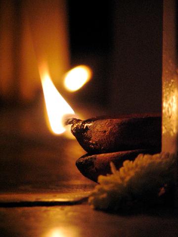 In the month of Kattak or Kartik, the days begin to get shorter. Lamps are lit earlier in the evenings. The lamp becomes in the poem a symbol rich in nuance. It represents the refined emotional and intellectual faculties of the bride which will eventually lead her to apprehend the Divine. The traditional lamp (dipak) is a tiny clay bowl, pointed at one end, with a cotton wick and filled with oil. But only that lamp shines steadily which is lighted by the match of knowledge dipaku sahaji balai tati jalaia, and whose oil is rasa, the aesthetic essence of love dipak rasa telo (SGGS 1109). Simultaneously, the lamp is essential to seeing, to recognising. The powers of eyesight and insight coalesce in it. Suggesting coalition of knowledge (kindling match) and love (oil) in the bride's psychological condition, the dipak connects her physical being with "cosmic" time during the evenings of the month of Kattak. In this state she feels she is closer to achieving her goal of union with the Groom. In the month of Maghar, the bride listens to the praise of her Divine Groom through song, music, and poetry, and her sorrow departs "git nad kavit kavai suni ram nami dukhu bhagai" (SGGS 1109). Here can be discerned the effect of aesthetics upon the human mind: music/sound which travels in external atmosphere penetrates into the very being of the bride. Thereby, her sorrow (dukhu), literally vanishes away (bhagai). Guru Ji paints a vivid picture of the bride sitting amidst other women and men, listening to song, music and poetry. She is part of a symphonic gathering, the sadhsangat. We thus see in the month of Maghar the bride as a participant within a community which cherishes the singing of the Divine Name.