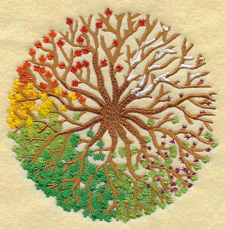 The bride's actualisation of Asuni (Asuj), the seventh month, is, in fact, a realisation of her own self. The cosmic time and space mirror her own situation. Because she is caught in a sense of duality, she stands forsaken by her singular Groom and remains in separation. On the ground, "kukah kah si phule -the country shrubs bearing white flowers are in bloom" (SGGS, 1109). These white flowers represent her own white hair; .the bride is greying. Furthermore, the coming season frightens her: "agai gham pichhai ruti jada dekhi chalat manu dole - gone is the summer and cold winter is soon to come; this makes my heart tremble" (SGGS, 1109). What the bride realises at this seasonal juncture is the loss of her own youth and the setting in of old age, and she becomes apprehensive. But she also sees in this autumn month some green boughs which instill optimism in her. The possibility of meeting with her Groom again strikes her. "sahaji pakai so mitha - that alone is ripe and sweet which ripens slowly in its own sweet time" (SGGS, 1109), the bride tells herself.