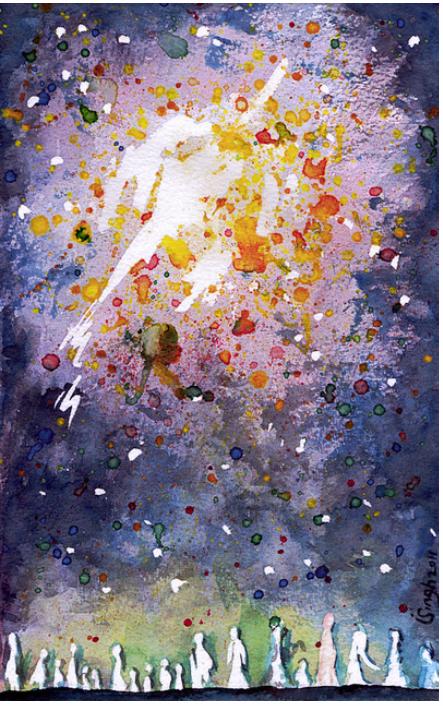 A. Actually, I don’t get much free time to do art because of work and other commitments. But in terms of energy and focus, that comes from the desire to put my ideas onto paper! I usually paint after work and on the weekends when I can, and I tend to take two to four blocks of two to four hours each time to finish a piece. When I don’t get a lot of time, or if I have an idea sitting in my head for a while, then this just adds to my desire to find time to explore and produce something.