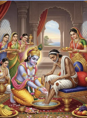 'God met Sudama and removed his poverty; through loving devotional worship, he crossed over.'