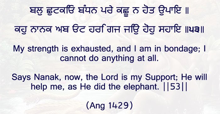 Editor's Note: The elephant is referenced many times in Siri Guru Granth Sahib. One more example is by Guru Teg Bahadur Sahib in the sloks praying to God to save him as "You saved the elephant":