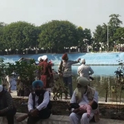 Guru Nanak Dev Ji, the founder of Sikhism, is believed to have attained enlightenment after taking a dip in the Kali Bein.[8] Guru Nanak Dev Ji is said to have disappeared while bathing in the Bein only to reappear three days later. Guru Nanak Dev Ji then proclaimed that "There is no Hindu and there is no Musalman. There is only one God and all are equal before Him".The Mool Mantra of Sikhism, Ik Onkar, originated from this experience. The Gurudwara Ber Sahib, where Guru Nanak Dev Ji used to meditate under a ber tree, is located on the Kali Bein's banks in Sultanpur Lodhi.