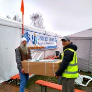 They picked up refugees from Warsaw and gave them a ride to Berlin. Abhai Raj returned to Warsaw with supplies like food, clothing, and sanitary supplies to give out to refugees. Another driver Raghurai, a physical therapist from Espanola, New Mexico USA, arrived in early April. She had worked on the Navajo Reservation for 5 years and was trained there in Emergency management. While applying for a Red Cross job, she learned about the Seva effort begun by Siri Sant Kaur and joined the team. After her arrival the team focus shifted to transportation of refugees and goods between Medyka and Warsaw.