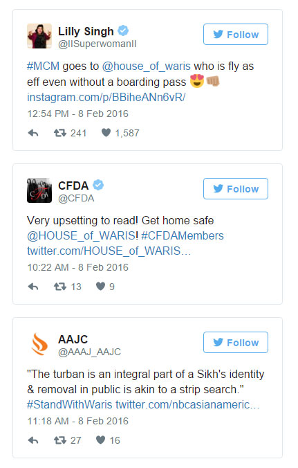 Advocates and celebrities are rallying behind Sikh actor and designer Waris Ahluwalia after he was stopped from boarding a New York-bound flight Monday because he was wearing a turban.