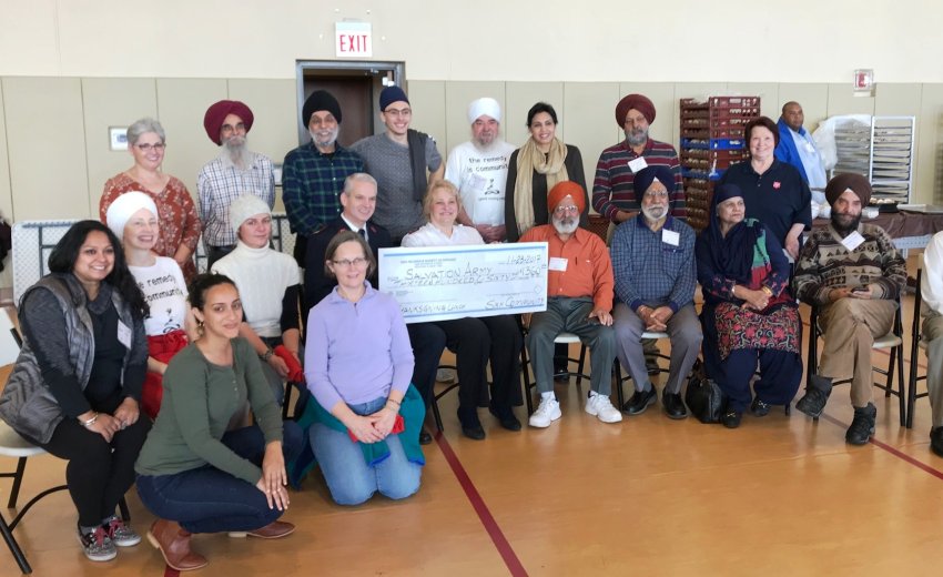 Sikh Community collected funds and donated to Salvation Army. In addition to funds Amardeep Singh Chawla, his wife Timki Kaur and their daughter Gurbani Kaur donated canned food for the pantry at the same location. Major Nancy Power especially thanked Amardeep Singh Chawla and his family for their extra efforts in donating the food cans.
