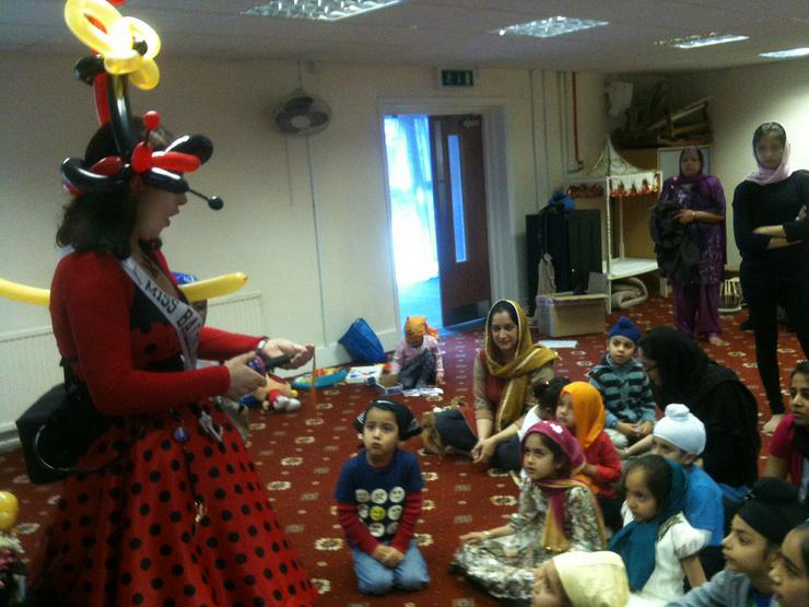 As the parents were inspired in the Gurdwara Sahib by Eleanor, we had Miss Balloniverse upstairs in the gallery, she made animals out of gallons including a kirpa and shed, she was amazing. The children were in awe by her and her creativity and humility.