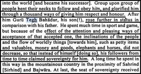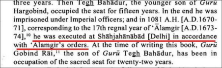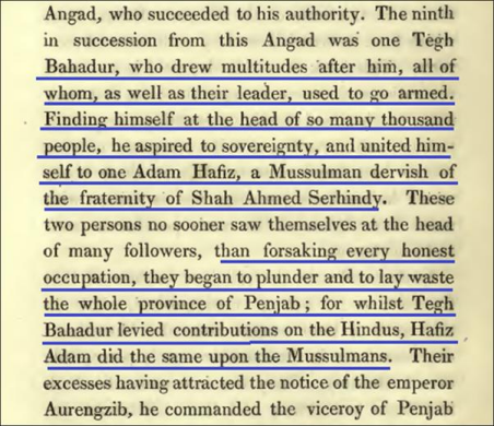 Moreover, if the Sikh Guru had truly been a plunderer, it is implausible that a Muslim chronicler would have fabricated praise or sought to defend him. On the contrary, Muhammad Qasim explicitly refers to the martyrdom of Guru Tegh Bahadur, a designation