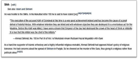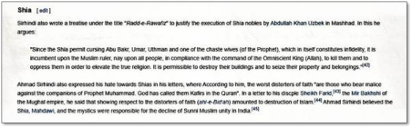 • The false invocation of Ahmad Sarhindi, apparently motivated by his anti-Shia stance, despite its irrelevance to the subject under discussion.