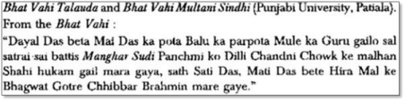 The identical sequence of events is claimed by Bhatt Vahis, another eyewitness to the occurrences. Bansavalinama (1759) reiterates the same point once again.