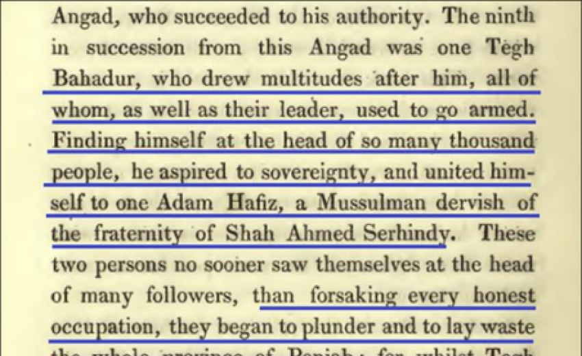 The present discussion seeks to highlight not only Sayid Ghullam Hussain’s partiality but also the numerous errors and internal contradictions that weaken his historical credibility. His first and most fundamental mistake was the false association of Guru Tegh Bahadur with Hafiz Adam, a follower of Ahmad Sirhindi.