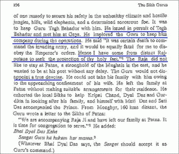 If the Guru were merely a robber, why would Raja Ram Singh of Amber request that he accompany him on his eastern campaign? When commanding one of the most powerful military forces of the time, what reason would Raja Ram Singh have to seek the presence of an ordinary plunderer on the battlefield?