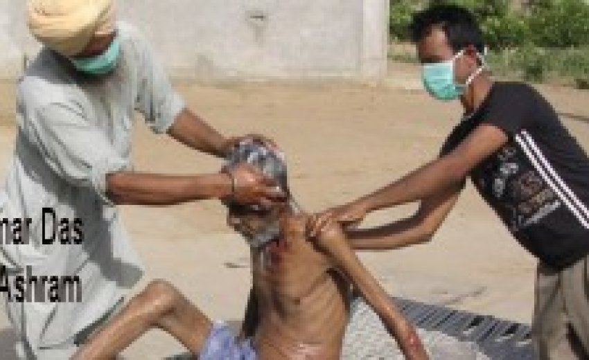 Mentally sick and homeless Desu Ram lying on roadside near village Sudhar was brought to Ashram