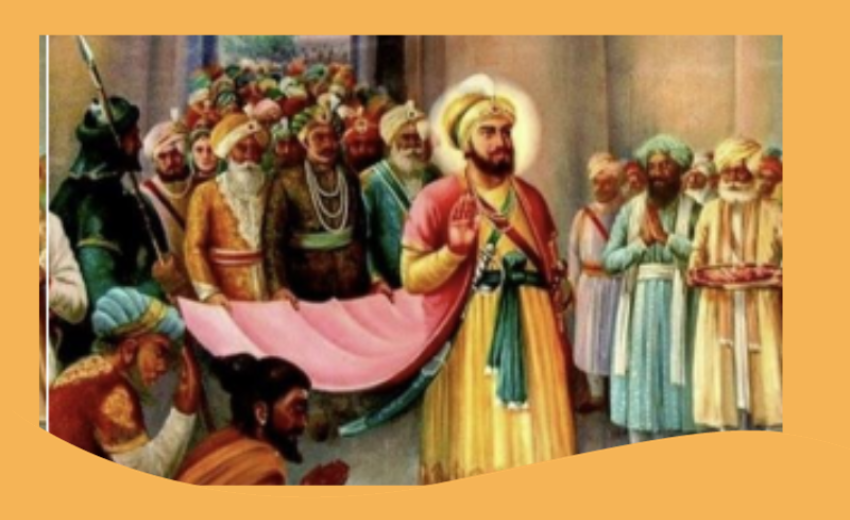 "Dar-ai-hungama Masand- wa- Sikhan, Me Raftade-wa-Diwar kila ra Sajda me Kardand" (Dabistan-i-Mazahib)
