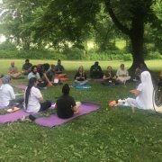 Our third lecture was by Rajwant  Kaur on Yoga practices and developing a routine for the morning and evening.  She taught us to be present.  Stretching and breathing exercises are also helpful in relaxing our minds and sleeping.  We practiced various routines for morning and for evening.