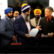 "We are grateful for the support and selfless service of the Sikh community in Fishers," states Aaron Batt, Federal Security Director of the Indiana Transportation Security Administration. "The men and women at TSA have been in a very difficult situation, not knowing when they will be paid, but yet they have not allowed that uncertainty to get in the way of fulfilling our mission to protect the nation's transportation systems. Their commitment and drive to protect the community is motivated when people like (Singh and the Sikh community) recognize their sacrifices and offer assistance." Batt presented Singh with the TSA Indiana Challenge Coin which recognizes those who exhibit core values of Integrity, Respect, and Commitment.