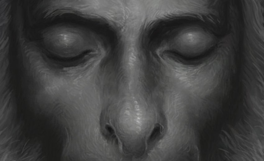 Even though most people associate the image of Hanuman ji with ‘Rhesus Monkeys’, I thought it would be interesting to see Hanuman ji with the facial characteristics of the ‘Hanuman Langur’, with black-skin and white fur.