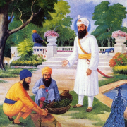 Advised that Guru Har Rai had healing skills and these rare medicines, Shah Jahan sent a humble request for treatment for his son. The special medicines were given to the Emperor’s messenger with the addition of a pearl that was to be ground up into powder and added to the remedy. The Guru’s Sikhs asked Guru Har Rai why he was helping the son of Shah Jahan, an enemy who had quarreled with both his great-grandfather, Guru Arjan Dev, and his grandfather, Guru Hargobind, and was certainly also his own enemy.