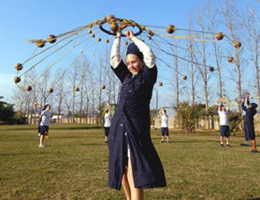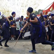 After an assembly of kirtan-singing, in twangy American accents, school hours commence at 8.30, with a regular academic programme that prepares students for the International Baccalaureate exam. Lunchtime brings an end to the academic session, but more arduous exertions soon follow. Such as the hour-long physical training session at 3.30 pm, during which students thrash their way through exercises and bouts of "gatka"—a Sikh martial art which has them flail a variety of weapons and engage in hand-to-hand combat. This is followed by an hour's team sports: frisbee, basketball, football, as well as kabaddi, for which Miri Piri's girls have a reputation that strikes terror into local school teams.