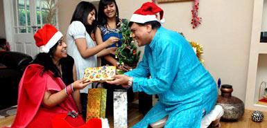 “We gather together as a family several times a year, usually for religious ceremonies, spiritual functions or to mourn if someone dies. But it is only at Christmas that we have so much merriment. Although Diwali is similar to Christmas, with friends, family, presents and decorations, we also meet our extended family the day before and say joint prayers, kali chaudas.