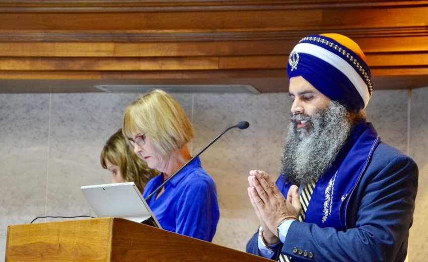 Khalsa was given the honor of opening the session with an invocation that emphasized Sikh tradition and beliefs. “As Sikhs, we hold unity, dignity, respect, social justice, peace and prosperity as key tenets of a healthy, happy, holy life. During the invocation, I shared these values with our great legislators and asked for blessings upon our children, our educational institutions, the wellbeing of our elderly and those serving in the military, the purity of our natural resources, Hoosier businesses and workers, our governmental services, and all of our elected officials who provide leadership, vision, integrity and dedication to the state of Indiana and its citizens,” Khalsa said.