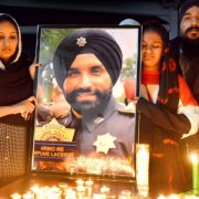 Palatine, IL: In remembrance of the Harris County Texas Sheriff Department Deputy Sandeep Singh Dhaliwal an interfaith prayer service and candlelight vigil was organized by Sikh Religious Society Palatine Illinois at Gurdwara langar hall on October 2, 2019.