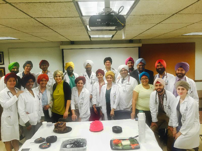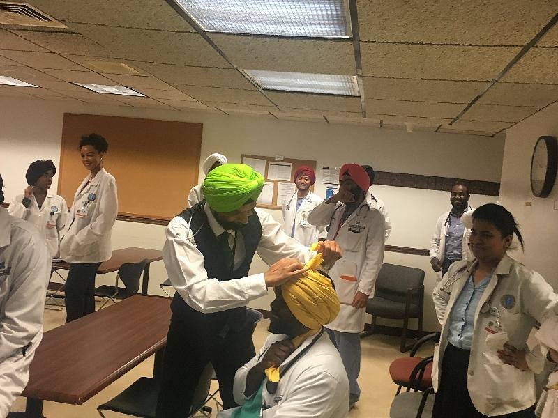 One of my doctors came up with the idea of bringing a cake and serving snacks to everyone. Another coworker pitched in to bring the turbans and others offered to tie turbans. When we started the idea we were a group of four or five people and when the day arrived, we had at least 30 people who wore the turban that day!