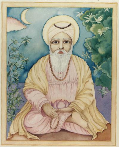 The Guru went out and sat on the bank of the river in a state of Samadhi ‑ perfectly in tune with the cosmos. As he closed his eyes, the spirits of Kali Yug, the Age of Darkness, trembled at his appearance and let all their fury rage round him. Thunder, lightning and myriad of formless frightening shapes robed in blackness crowded round sharpening their five‑pointed weapons of passion, anger, greed, delusion and conceit; emitting flames of desire and wielding the doubled‑edged sword of hate and harm. He let them pass and remained calm like a lotus amidst stormy waters.