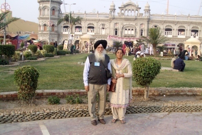 The author and his wife, Gurcharan Kaur, in the park in front of the Gurdwara