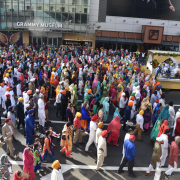 The Guru Ram Das Ashram Kirtan Jetha played the closing Kirtan which included “Anand Sahib” and “Song of the Khalsa” before Siri Guru Granth Sahib Ji was escorted outdoors for the beginning of the resplendent Nagar Kirtan.