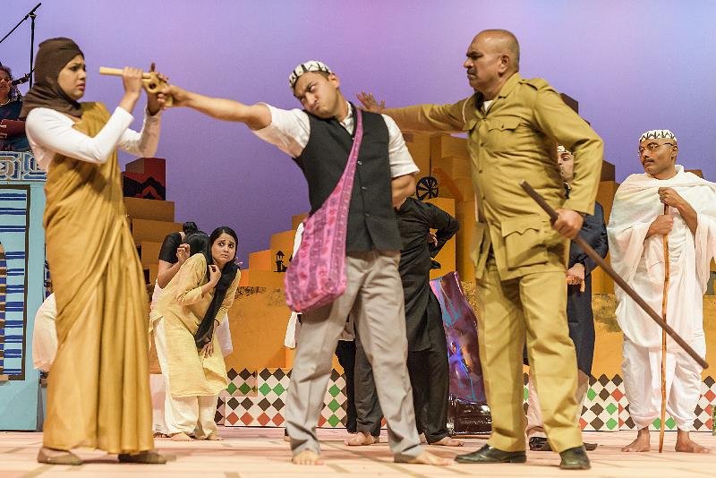 As India and Pakistan mark the 70th anniversary of their independence, Naatak’s Toba Tek Singh, a poignant satire, serves as a heart rending reminder of the pain and horrific experience of the millions who were uprooted from their homes. It absolves neither the Brits, who arbitrarily decided the fate of the subcontinent they had ruled for a hundred years, nor the Indian politicians, that many feel betrayed the country for their own ambitions. In a stroke of genius, Sujit Saraf makes the lunatics play the politicians and morph back into being inmates of the asylum. In one hilarious scene Jinnah, the President of Pakistan is called a lunatic by an inmate. The lines between the sane and insane blur while the stark insanity of the partition rings clear. Nachikata Yakkundi’s music, and the impeccably choreographed dances steal the show even as they advance the story. The set is beautiful and the costumes vibrant. The interleaving of the National Anthems of India and Pakistan hints at the inextricable and knotty relationship of the two countries. The rendition of the Indian National anthem in Bengali is pure ear candy.