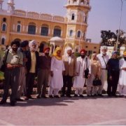 International Sikh delegation outside Guru Nanak’s birth place, Sri Nanakana Sahib, Pakistan.