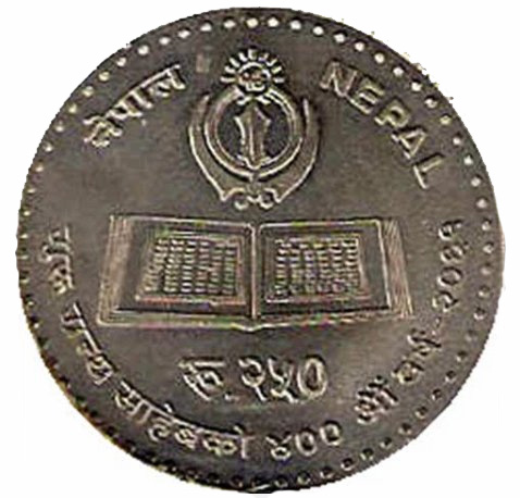 | Commemorative issue 400th Anniversary of Guru Granth Sahib Obverse Traditional design Reverse Holy Book of Sikhs Lettering: नेपाल NEPAL रू. २५० Edge Reeded |
