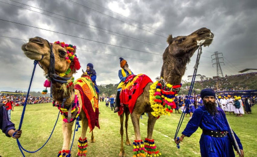 "Anandpur Sahib is referred to as ‘holy city of bliss’ and is mainly surrounded by semi-urban towns and villages. During the three-day festival, the town comes to life with lakhs of devotees converging here to pay their reverence to the 10th Guru. Devotees arriving in cars, vans, tractors, motorcycles are offered community kitchen food (langar) enroute to the gurudwara by the villagers."