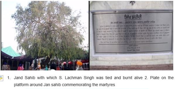Being at the scene and recalling and connecting to the events even 96 years later sent shivers along my spine. As I bowed in reverence tears rolled my eyes; may be paying obeisance; may be trying to extinguish the burning fire which was ignited the burning Jand tree along with whom Bhai Lachhman Singh was tied. Just other side, was the place commemorating the event when all the bodies were collected and put to a common pyre.