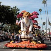 The Sikh American Float Foundation’s entry with a Bhai Ghaneya Ji float made its way to the Rose Bowl Parade route on New Year’s Day in 2020. The Sikhs continued to smile and waved as they passed by the onlookers. The float also had a 12-year non-Sikh boy Miles Lhotka on the float.