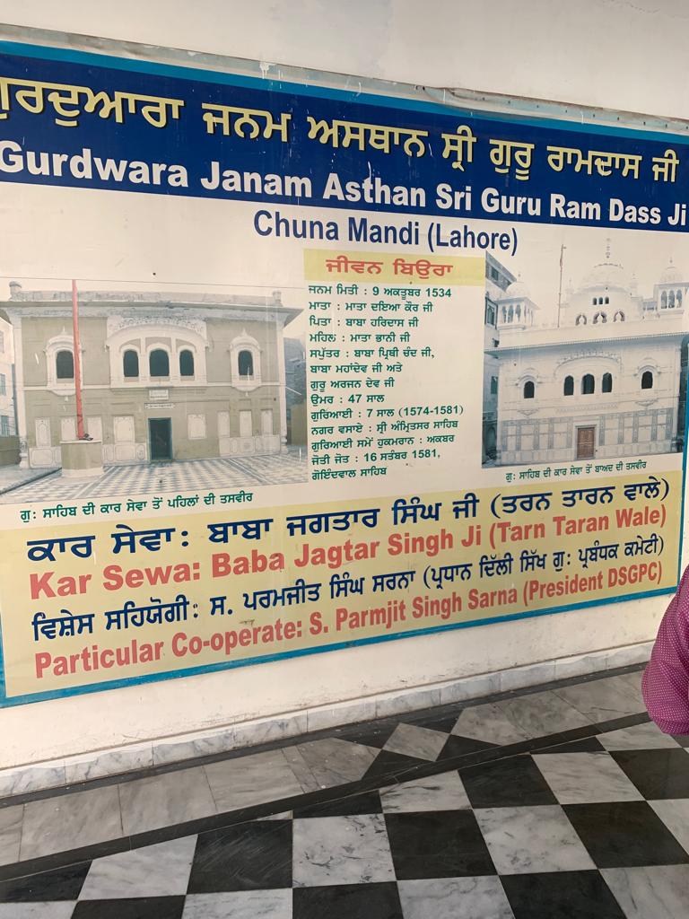 Guru Ram Das Ji asked (Guru) Arjan to remain in Lahore until he was asked to return. (Guru) Arjan was instructed to share the Guru’s teachings with the Sikhs there. Any donations received by him were to be given to the free kitchen to feed the poor. (Guru) Arjan stayed at a house which is not very far from the birth place of Guru Ram Das in Chuna Mandi, Lahore. After the wedding celebrations were over, (Guru) Arjan started holding daily congregations in the house where Guru Ram Das was born. His spare time was spent in study and meeting spiritually inclined prominent personalities of Lahore as Hazrat Mian Mir, Chhajju, Shah Husain etc. for exchange of views.