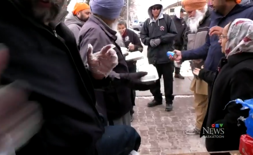 SASKATOON -- Members of the Sikh Society of Saskatchewan gathered Friday in the Pleasant Hill neighbourhood to give away free meals to people in need.