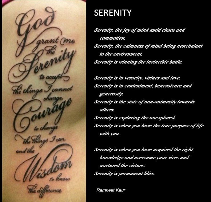 Serenity, the joy of mind amid chaos and commotion. Serenity, the calmness of mind being nonchalant to the environment.