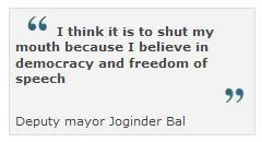 I think it is to shut my mouth because I believe in democracy and freedom of speech Deputy mayor Joginder Bal.
