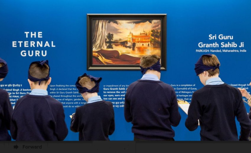 In November 2017 the UK’s first permanent Sikh Art Gallery ‘Without Shape Without Form’ was opened. The Gallery, a collaboration between volunteers at Guru Maneyo Granth Gurdwara in Slough, UK and Kanwar Singh from ArtofPunjab, has been highly acclaimed with thousands of visitors of all faiths attending from across the UK and abroad. Its impact on all that have visited has been truly profound. The moving images from Sikh History carefully combined with heart-felt verses from Sri Guru Granth Sahib ji results in an experience that has left many lost for words and in tears of emotion.